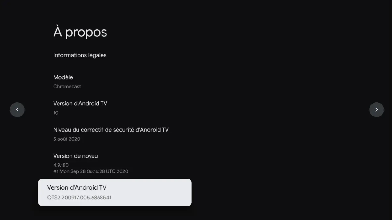 • Enfin cliques sur Android TV OS Build 7 fois de suite.